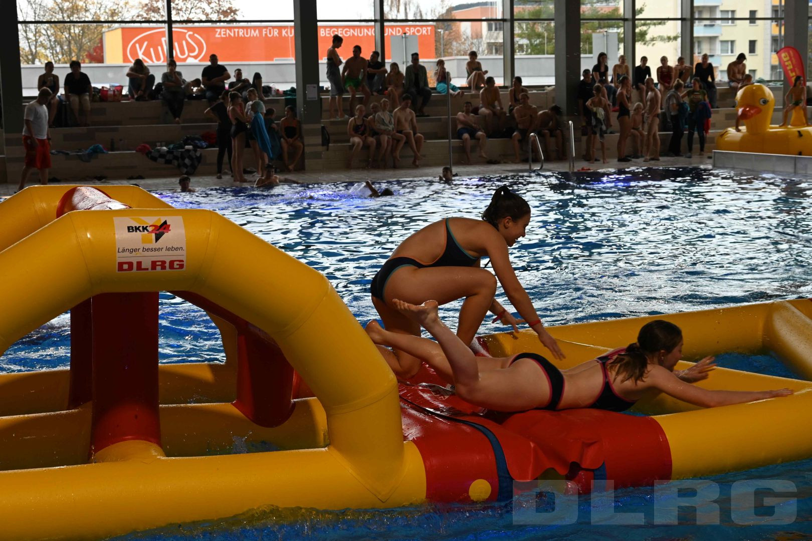 Bereits zwei Wochen vor dem Termin war die Veranstaltung mit 30 angemeldeten Teams (je vier Teilnehmer) ausgebucht. Diese waren sehr unterschiedlich gemischt. Einige Vereine stellten ein Team, wie die Ortsgruppe Jena selbst (das Mädels-Team „DLRG Jena Jugend“ und ein Jungs-Team „Die wilden Wasserotter“), die Ortsgruppe Kahla (mit drei Teams), die WSG Jena, die Wasserwacht und der H2O-Verein. Auch die Bädergesellschaft schickte ihre Azubis (Die Galaktischen Vier) ins Rennen. Die meisten Teams aber hatten sich als Familie oder Freundesgruppe angemeldet.